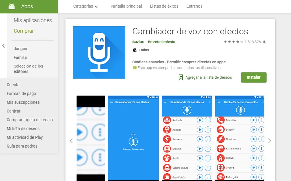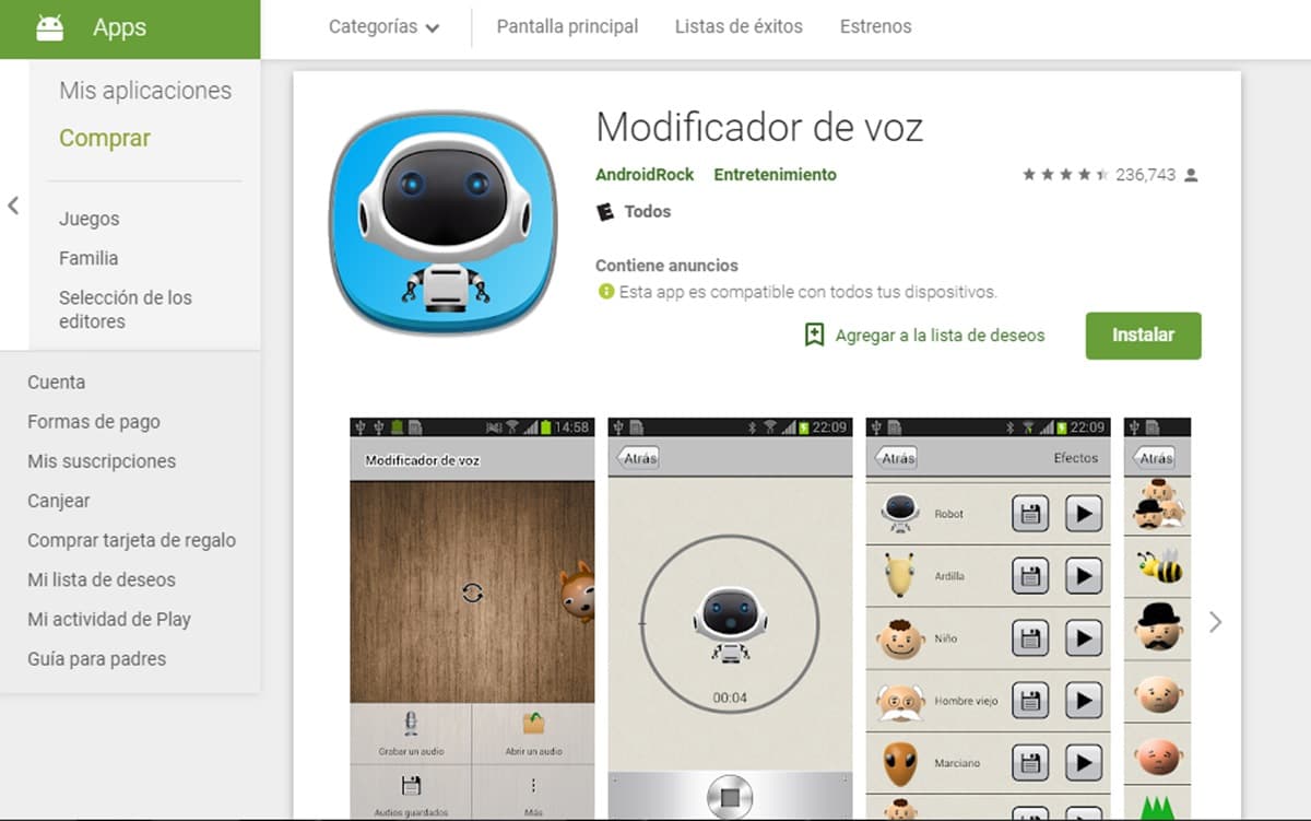 Esta es la App más usada para convertir tus mensajes de voz en divertidos audios, ya que tiene una amplia gama de modificadores que van desde voz de ardilla, robot, viejito o incluso un aterrador marciano.