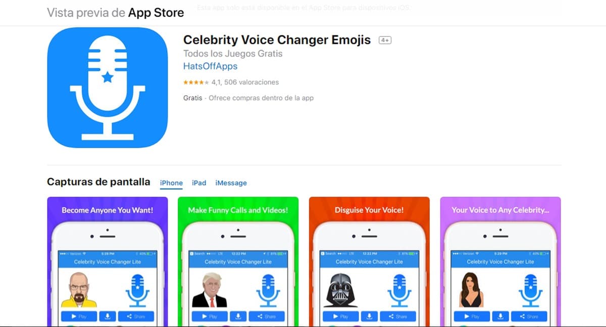 Exclusiva para IOS, con esta app puedes modificar tu voz para que se parezca a la de alguna celebridad o personaje famoso. Están disponibles las voces de Elmo, Darth Vader o hasta Donald Trump.