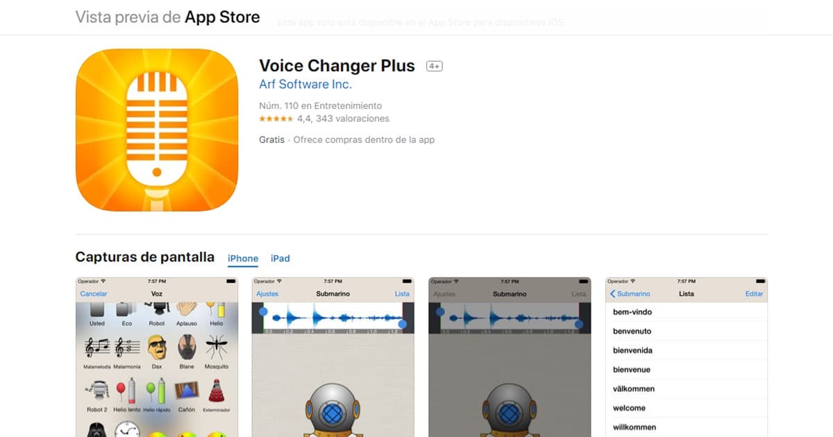 La mejor app para modificar la voz de iOS. Además de los filtros de voz que ya mencionamos, te da la oportunidad de agregarle efectos de sonido como aplausos, batería o el clásico grillo.