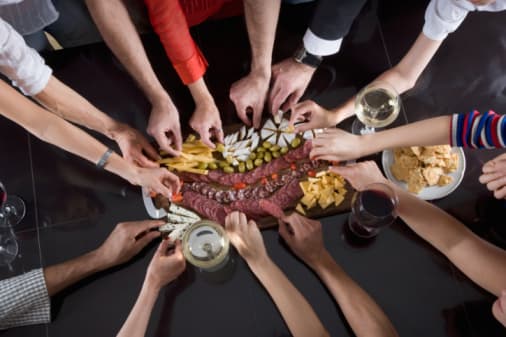 Cuando comes acompañado de una persona, comes un 35 % más que cuando comes solo. Cuando comes con tres personas más, un 75 % más y cuando comes con más de siete personas comes el 100 % más de lo que comerías habitualmente, es decir el doble. Esto tiene que ver con la variedad de comida que tienes disponible, cuando comes en grupo hay más comida y por lo tanto comes más.