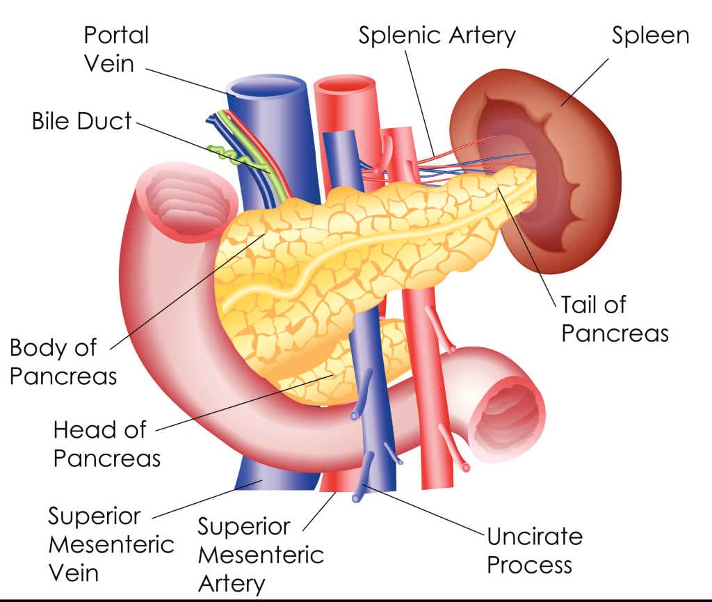 Puntualmente, en el páncreas, la insulina se produce en las isletas de Langerhans, de hecho el nombre insulina proviene del latín insulae, es decir, isla. La función de la glándula pancreática está íntimamente relacionada al funcionamiento general del organismo. Se ubica en el abdomen y está rodeada por órganos como el hígado, el bazo, el estómago, el intestino delgado y la vesícula.