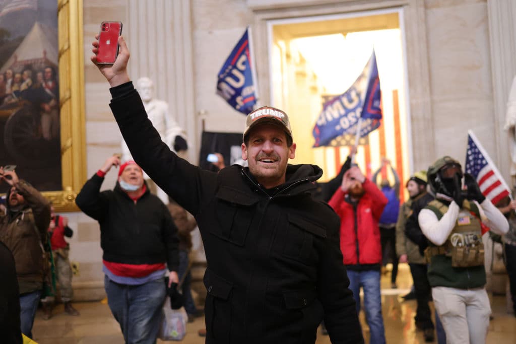 Muchos de los manifestantes que lograron irrumpir al Capitolio –la mayoría sin cubrebocas, a pesar de la emergencia sanitaria– celebraron su intrusión con vítores, vídeos y fotos.
