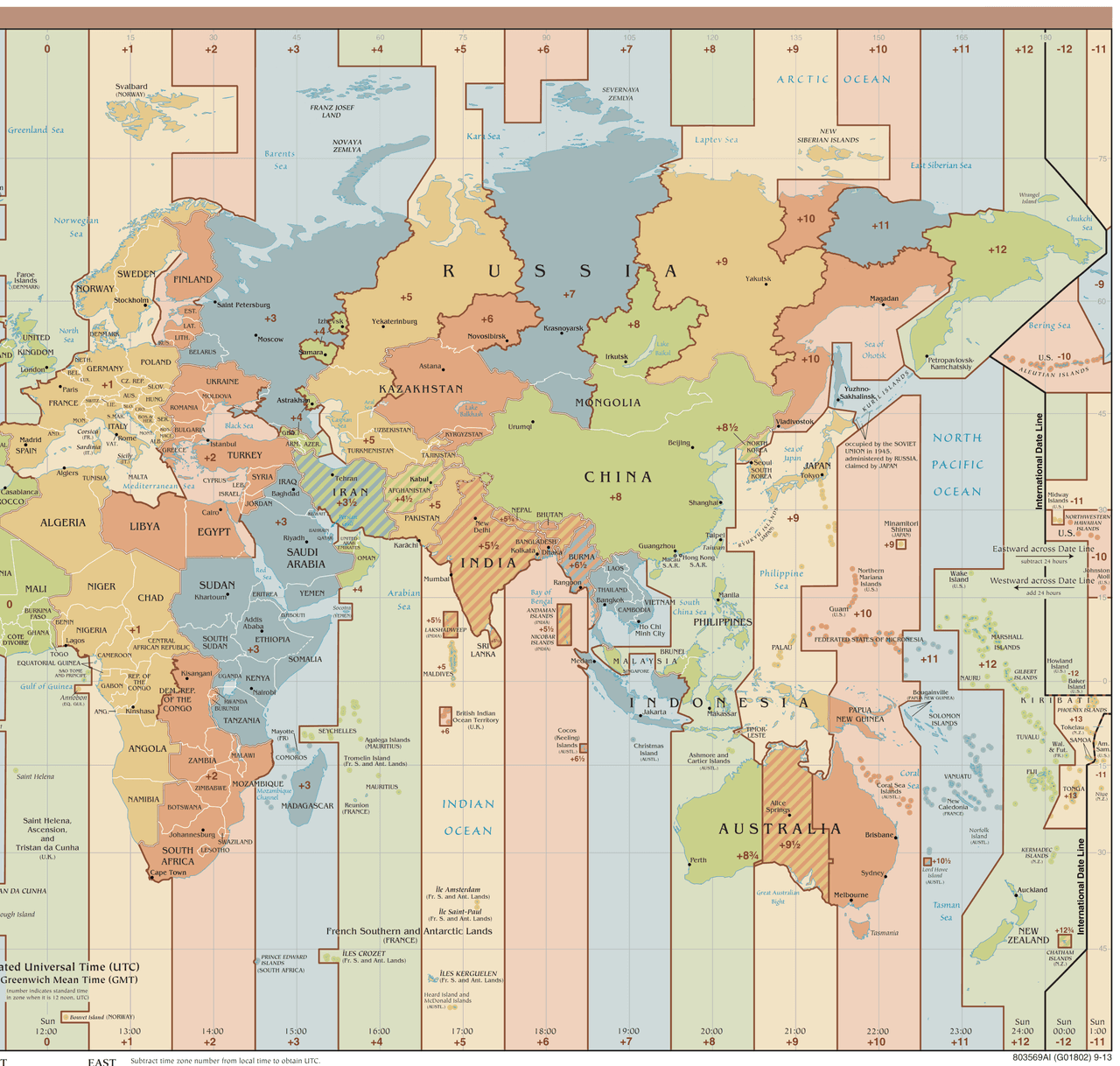 Como explicamos más arriba: a pesar de que las líneas de cambio de hora coinciden más o menos con los meridianos cada 15 grados de longitud, cada país adopta diferentes zonas horarias en función de una serie de factores.