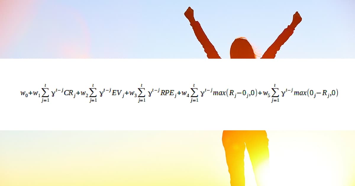 Esta ecuación es a simple vista muy complicada, porque tiene varios factores totalmente desconocidos y no es para nada intuitiva. Pero dejemos esta ecuación a los matemáticos. Lo que debes entender, a grandes rasgos, se resume a lo siguiente: la felicidad momentánea depende de la expectativa de una persona frente a un evento, del éxito obtenido y del éxito de su compañero. Esta ecuación solo predice cómo van a variar los niveles de felicidad en función de situaciones de la vida diaria.