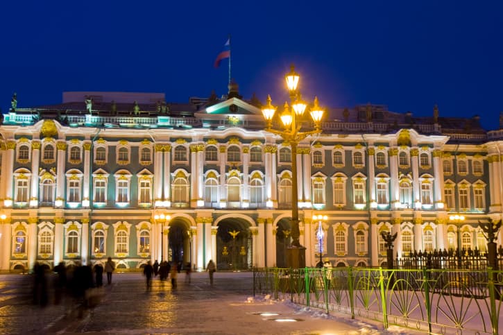 Este edificio es el más grande y lujoso de San Petersburgo, y está en el centro del Museo Hermitage que nació como un pedido de Catalina la Grande. El Palacio de Invierno fue la residencia oficial de los zares, y el Museo Hermitage es hoy uno de los museos más grandes del mundo, y encierra un impresionante despliegue de obras de arte, detalles arquitectónicos y joyas reales.