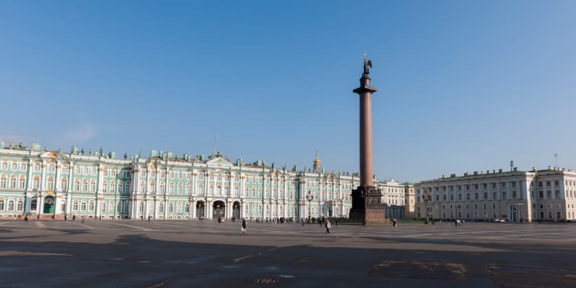 Es una de las plazas más visitadas de Europa. Aquí se luce la Columna de Alejandro, un gran monolito de granito rojo que representa el triunfo de Rusia en las guerras de Napoleón. La Plaza del Palacio es además un ícono histórico y político, porque aquí empezaron las manifestaciones populares del Bloody Sunday y de la primera Revolución Rusa.