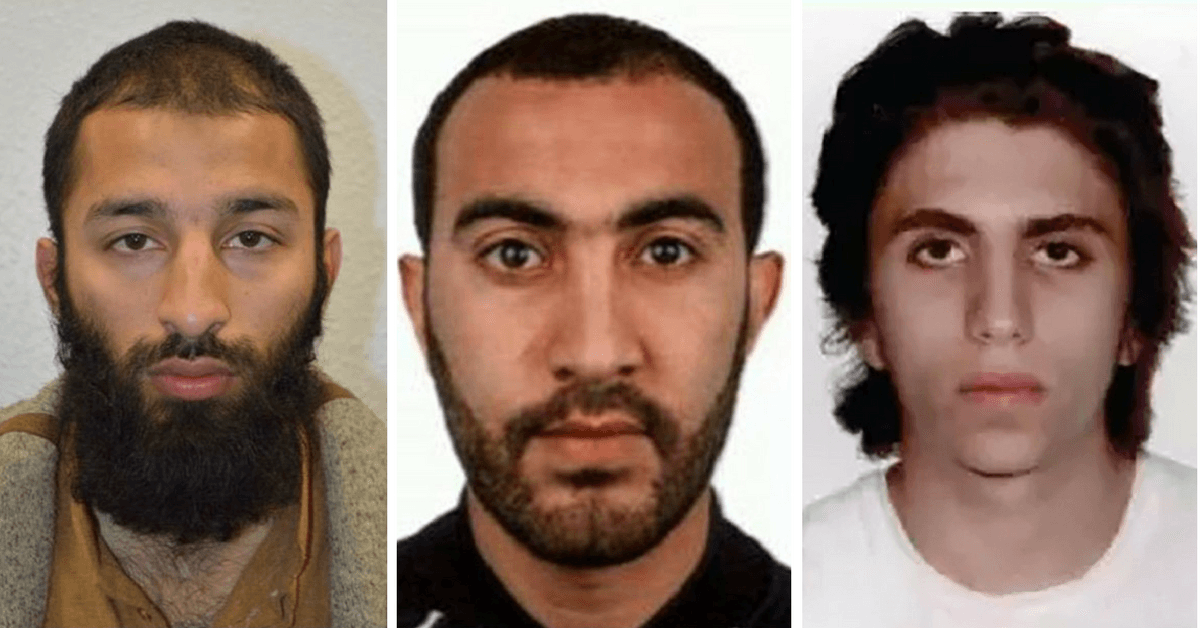 - Khuram Shazad Butt de 27 años; Rachid Redouane de 30 años; Youssef Zaghba de 22 años. Ellos fueron los 3 terroristas asesinados. Los 3 solían usar nombres diferentes para no ser identificados por la policía.