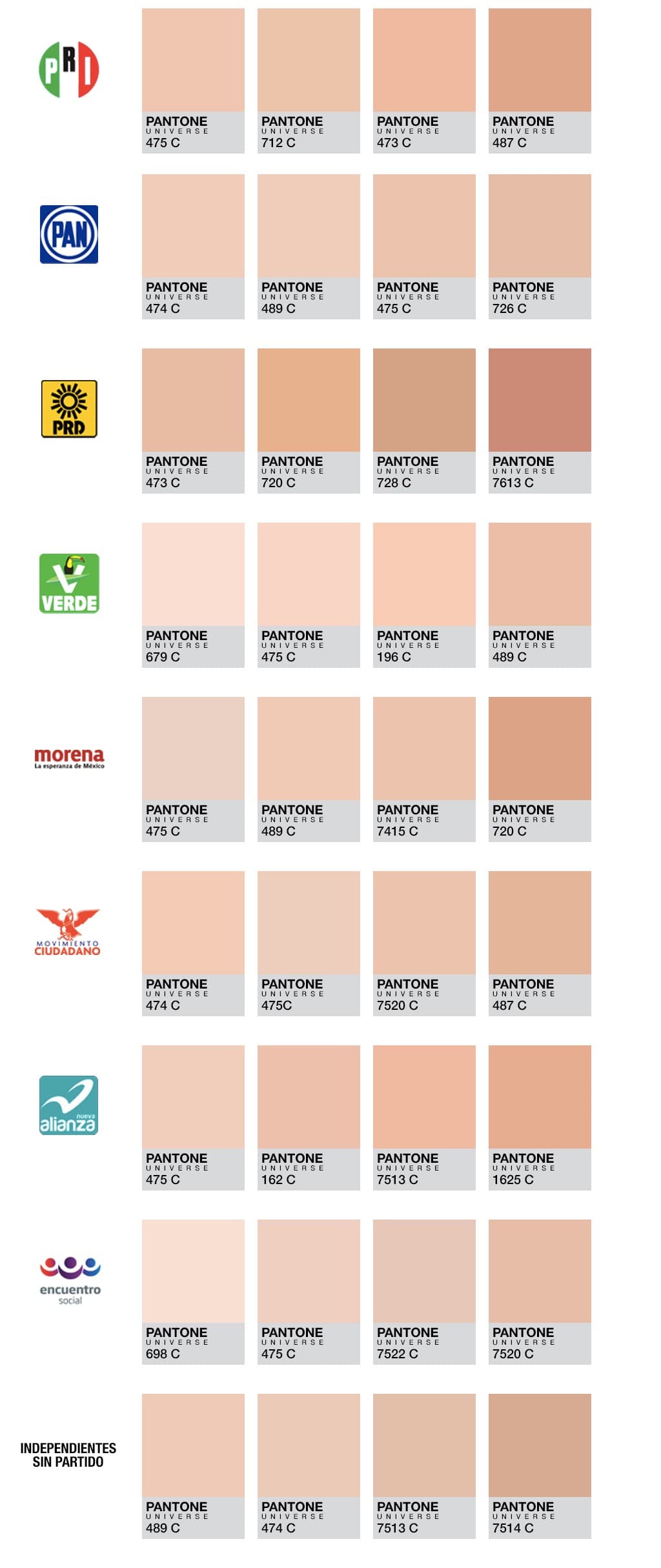 Una selección de los cuatro tonos más representativos para cada partido generó la siguiente tabla: