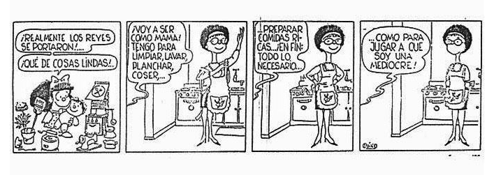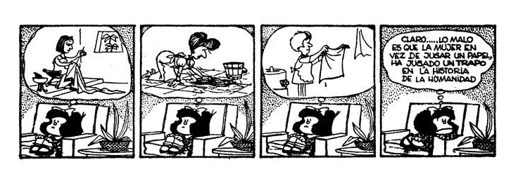 El caso de Mafalda es similar. Si bien la historieta ya cuenta con más de 50 años, esta pequeña niña -y la brillante mente de Quino detrás- nos sigue sorprendiendo con sus reflexiones y ocurrencias. Y una de las facetas más interesantes de ella, es justamente su visión feminista de la vida.