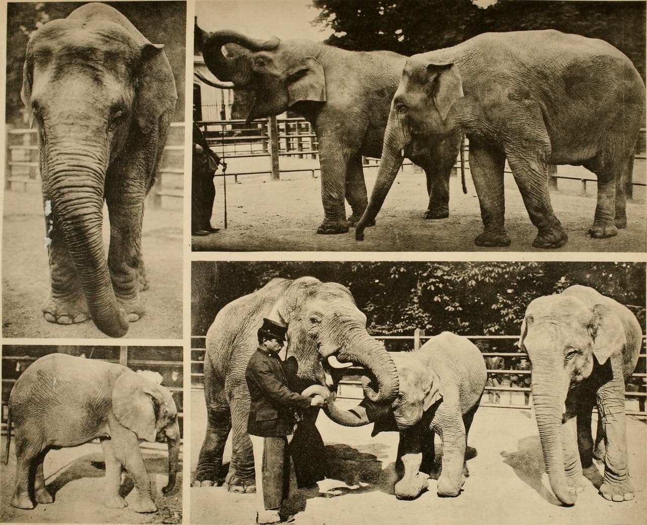 Asimismo, en el capítulo «India» de The britannica quizmaster se señala que el establecimiento de los primeros zoológicos de la historia puede asociarse a los más tempranos intentos de domesticación animal, en donde podemos señalar el entrenamiento y cautiverio de palomas del 4500 antes de la Era Común en las regiones de lo que hoy es Irak, así como también el adiestramiento de elefantes que tuvo lugar en la India unos 2000 años más tarde, en el 500 a. E. C.