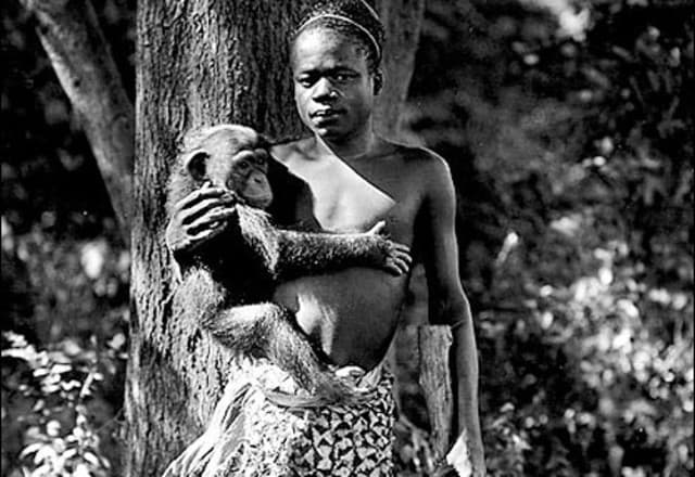 A comienzos del siglo XX, algunos zoológicos incluso contaban con exposiciones humanas. Esta fotografía data de 1906 y muestra a Ota Benga, congoleño expuesto en 1904 en la Exposición Universal de St. Louis y posteriormente exhibido en el Zoológico del Bronx, Nueva York, junto con un orangután.