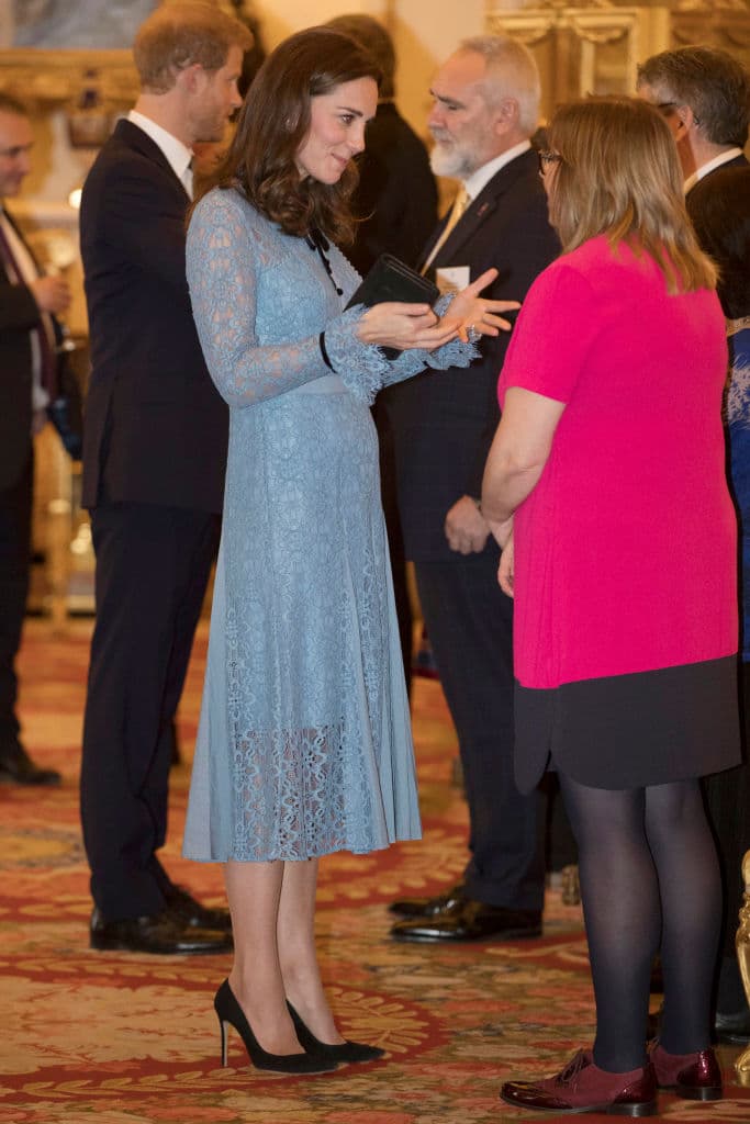 Aunque el embarazo de la duquesa de Cambridge ha sido muy criticado por los británicos, Kate sigue su vida normal y esta vez asistió a una recepción en el Palacio de Buckingham para celebrar el Día Internacional de la Salud Mental junto al príncipe William de Inglaterra.