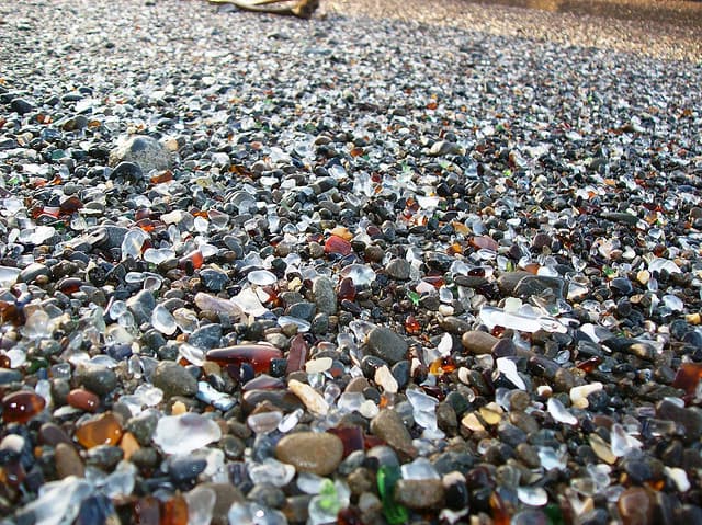 Pero... ¿qué pasa cuando alguno de esos elementos queda ausente? Eso es lo que sucede en la Glass Beach de California, una playa en la que no hay un solo granito de arena. Diecisiete años de basura acumulada transformaron la arena de esta playa en una superficie de cristal que todos quieren conocer.