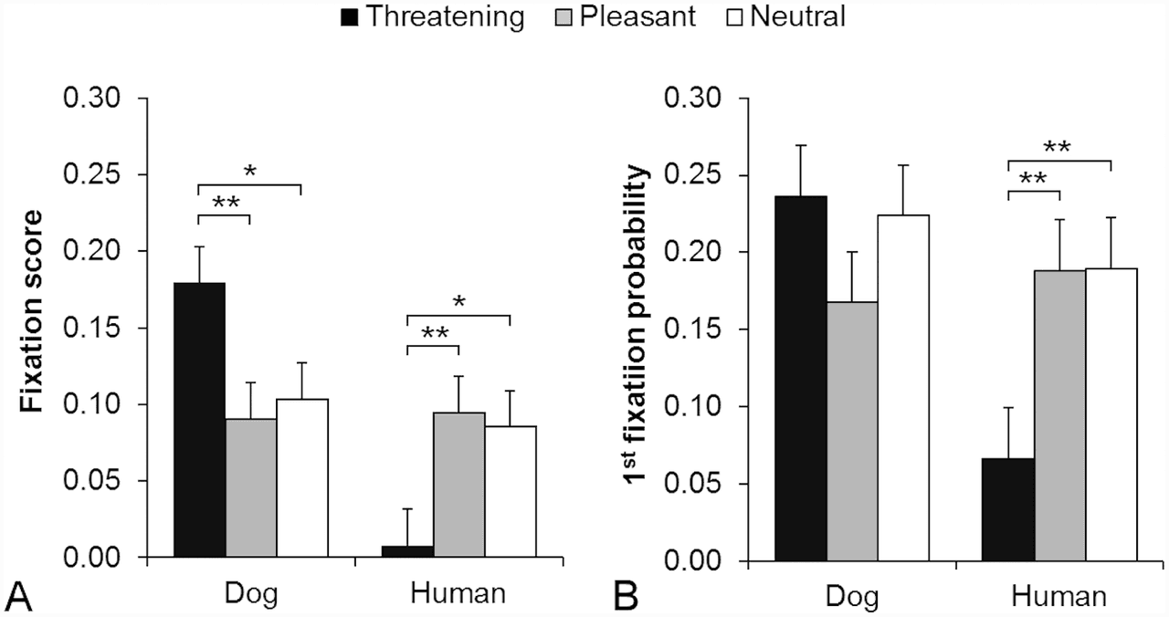 Luego determinaban el significado de la expresión mirando el rostro en su totalidad. Cuando los perros estudiados encontraban un rostro amenazante de otro perro, se concentraban en la zona de la boca y allí concentraban su mirada. Mientras que en el caso de un rostro humano amenazante, los perros mostraban un comportamiento evasivo y evitaban mirarlo.