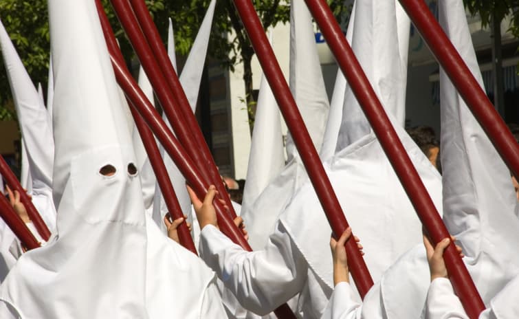 La Semana Santa en Sevilla es todo un sentimiento. Cada una de las 56 hermandades y cofradías que organizan las procesiones llevan una cruz como símbolo de guía, desfilan vestidos con túnicas penitenciales y a menudo también con música especial de fondo. En cada una de las procesiones, se recrean momentos de la vida de Jesucristo, desde el Domingo de Ramos hasta la crucifixión y resurrección.