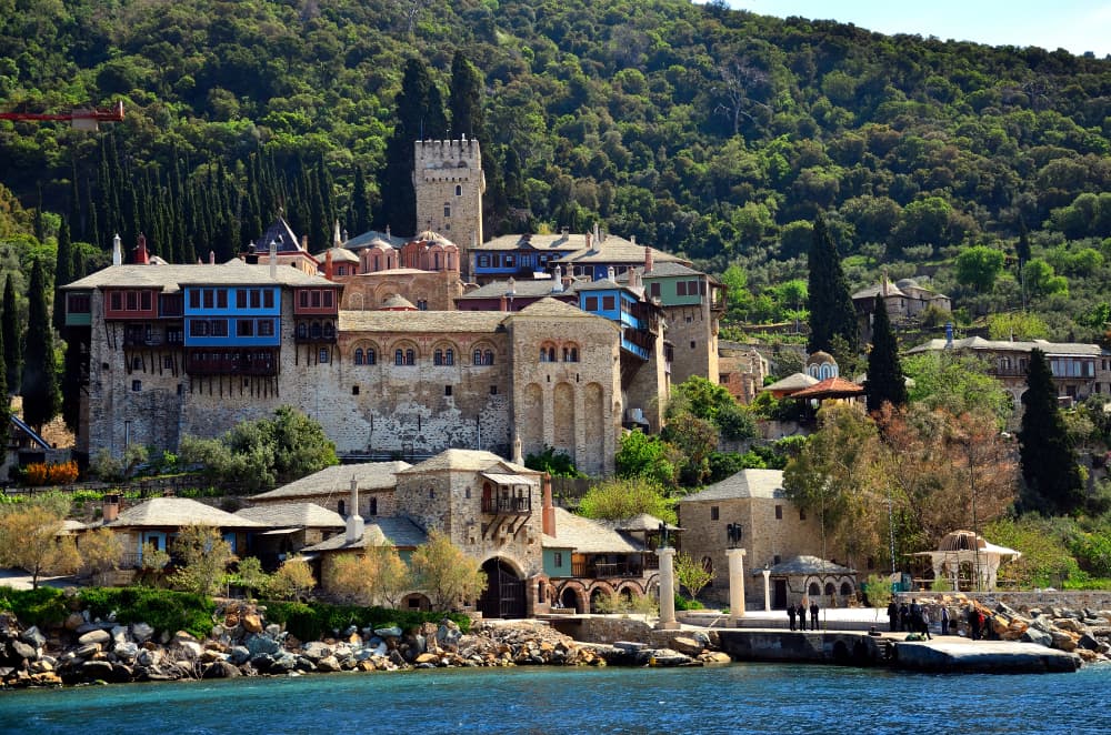 Este sitio —habitado por un aproximado de 1,400 monjes— también es conocido por no permitir el acceso a mujeres y niños. La prohibición femenina es una medida para asegurar el celibato de los hombres religiosos en el lugar. Esta regla también aplica para animales, excepto gatos.