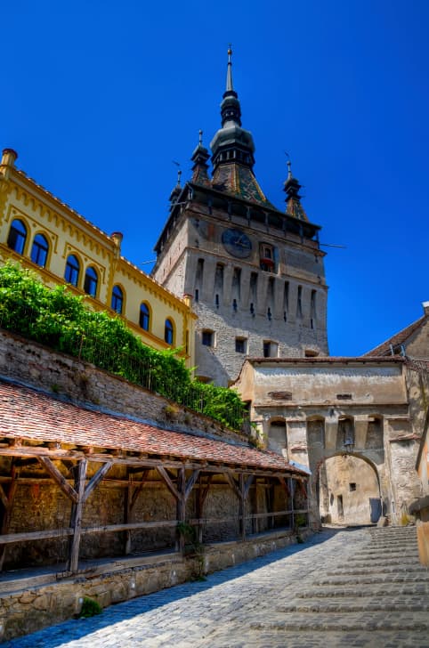Ubicada en la zona baja de la ciudad, cerca de la entrada principal, la Torre del Reloj es en uno de los lugares más visitados de Sighisoara. Su fundación tuvo lugar en el siglo XVII, cuando se la dotó de las pintorescas figurillas de madera que a cada hora realizan su clásico desfile para diversión de locales y turistas, así como el personaje que representa el cambio de día al que suele vérselo desfilar tras la sexta campanada de la medianoche.