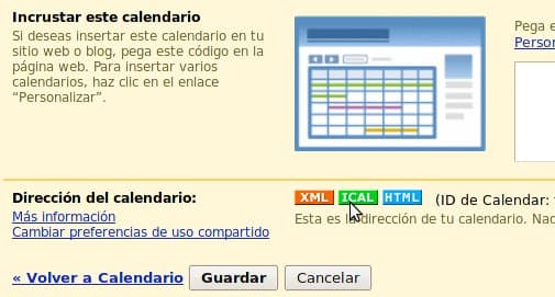 En Configuración del Calendario, haremos clic en nuestra_direccion@algunmail.com y, cargada la sección de "Detalles" navegaremos hacia el fondo de la página, justo a la sección Dirección del Calendario, debajo del "Incrustar".