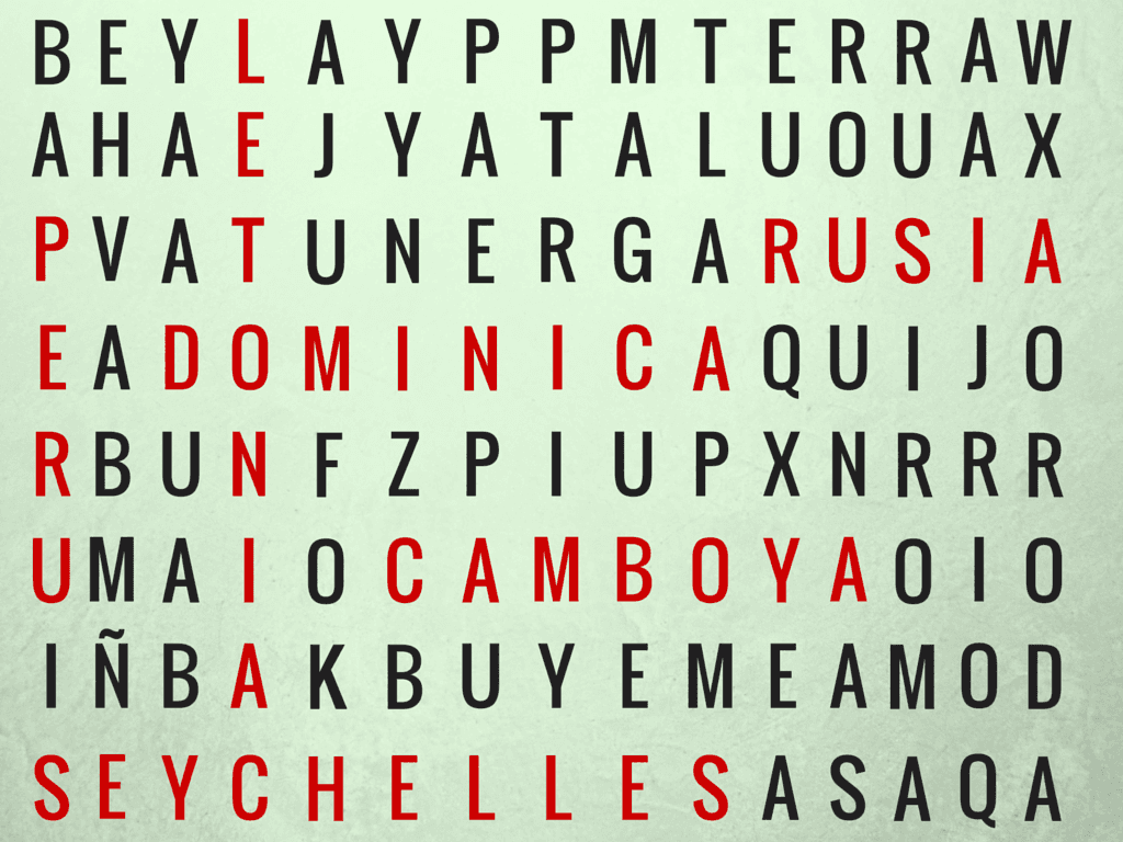 ¡Sopa de letras! ¿Puedes encontrar los 6 países ocultos?