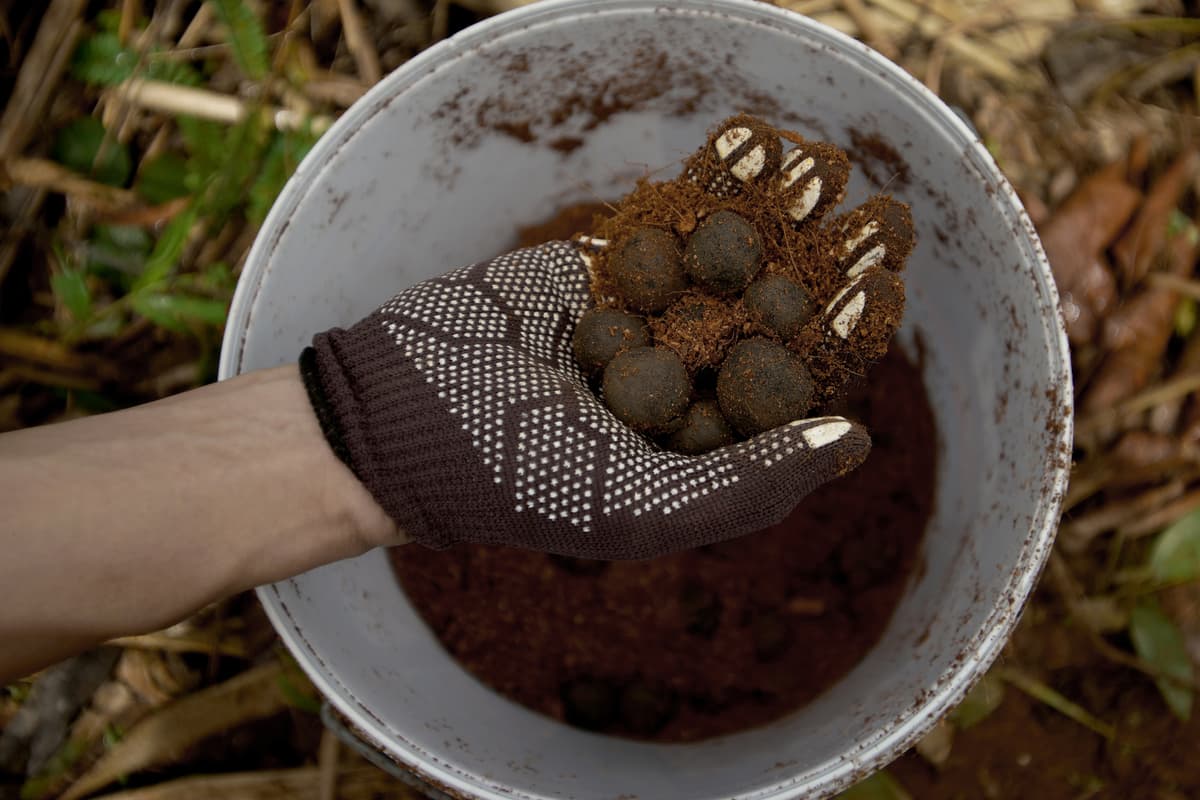 Se utilizan semillas de varias especies de árboles endémicas de la zona, se mezclan con la tierra local para formar pequeñas bolitas llamadas «bombas de semillas», las cuales se lanzan desde un avión y caen en una zona determinada, para luego crecer por su cuenta aprovechando las intensas lluvias y la riqueza del suelo.