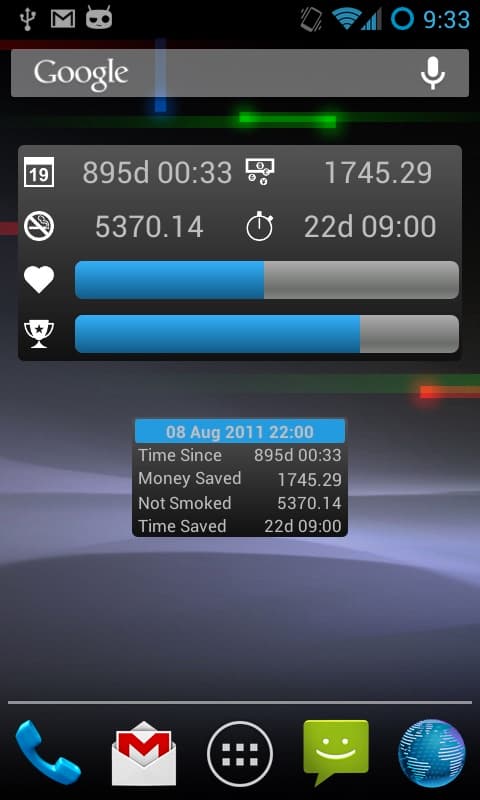Quit Smoking – Cessation Nation, gratuita y disponible para Android, te conecta con grupos de personas que están en tu misma situación. A medida que pasa el tiempo, lleva un conteo de cuánto dinero has ahorrado y la cantidad de CO2 que tu cuerpo dejó de ingerir.