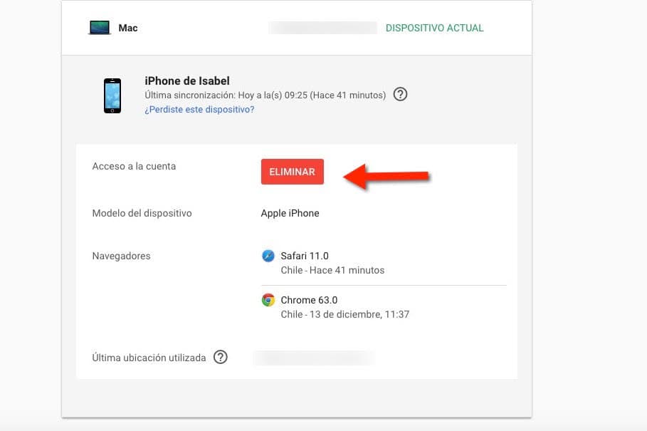 Si una computadora, móvil o tablet te parece sospechosa o ya no la utilizas, cliquea sobre ella y luego dale clic a «Eliminar». Con eso dejará de estar asociada a tu cuenta.