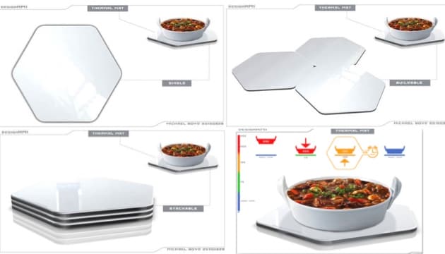 Hay gadgets para todo, incluyendo platos y bandejas inteligentes, y uno de los más ingeniosos es la Thermal Mat que, usando materiales especiales, mantiene la temperatura de tus alimentos sin riesgo de quemaduras.