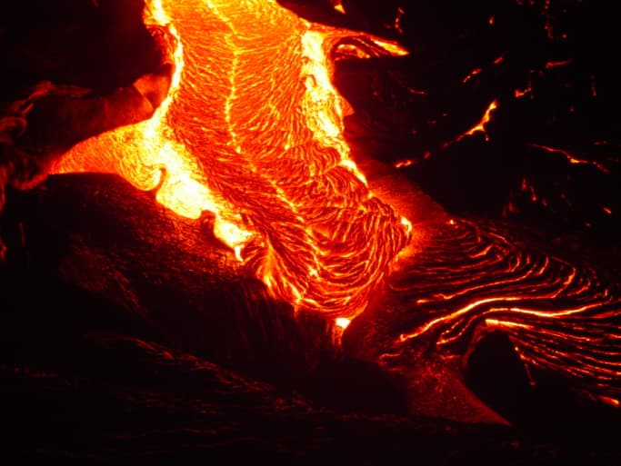 Lava tranquila que se desliza por la superficie sin explosiones. Se forman delgados ríos de lava con forma de cabello que los nativos llaman " cabellos de la diosa Pelé", la diosa del fuego.