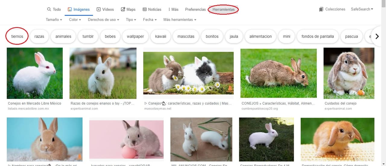 Aquí es en donde puedes ser aún más específico en cuestión de formatos, sitios web de procedencia e incluso los derechos de uso de cada imagen. Esto te será de gran ayuda si la búsqueda es para un trabajo o para tu negocio. Así evitarás usar fotos por las cuales podrían demandarte por utilizar sin permiso o sin haberlas pagado antes.