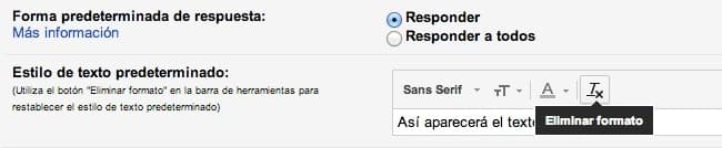 De ahora en adelante, envía correos exclusivamente en texto plano. Puedes configurar Gmail para ello. Ve a la Configuración de Gmail y, en la pestaña General, busca la sección Estilo de texto predeterminado: Allí, cliquea sobre Eliminar Formato, es el último icono de izquierda a derecha.