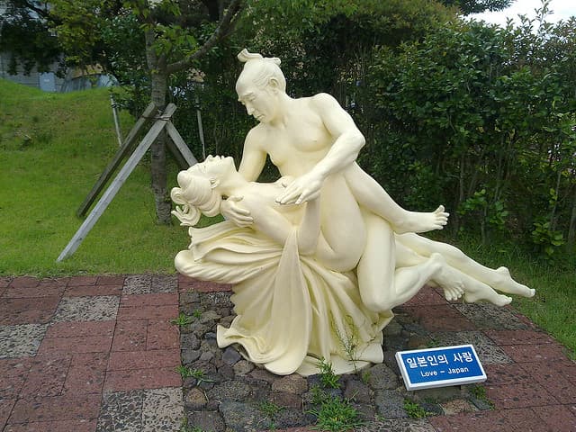 Ubicado en la isla de Cheju, un poco más al norte de Corea del Sur se exponen 140 estatuas originales diseminadas por todo el parque temático. Lo más curioso es que ninguna estatua luce con ropa, y lo que es peor, o mejor, depende para quien lo mire, en ellas se representan todas las posibles posturas sexuales que recomienda el Kamasutra. Nada queda fuera de este parque, pero no entraré en detalles, las imágenes hablan por sí mismas.