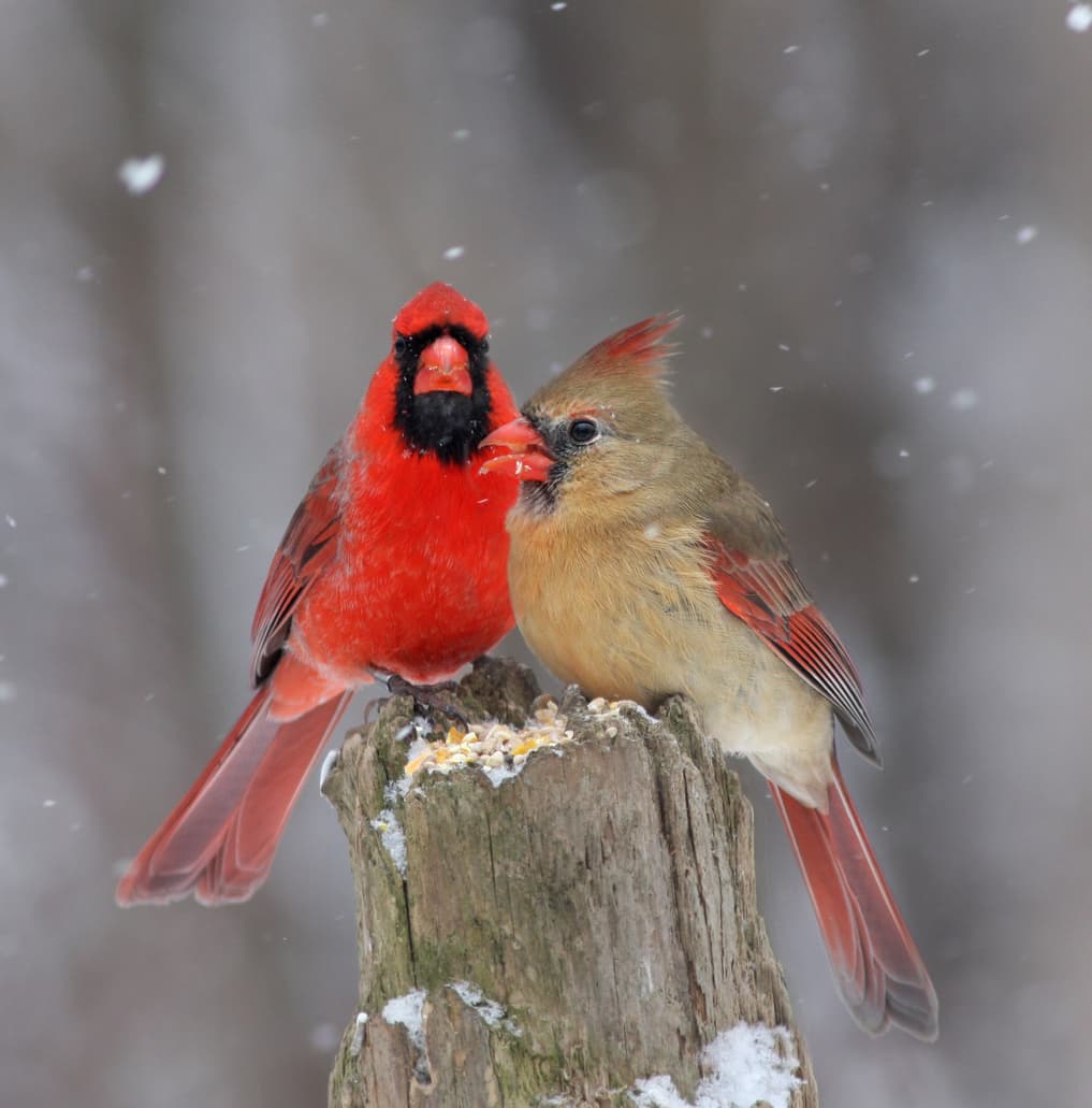 En el caso de los cardenales, las aves se distinguen porque los machos son de color rojo y las hembras café brillante.
