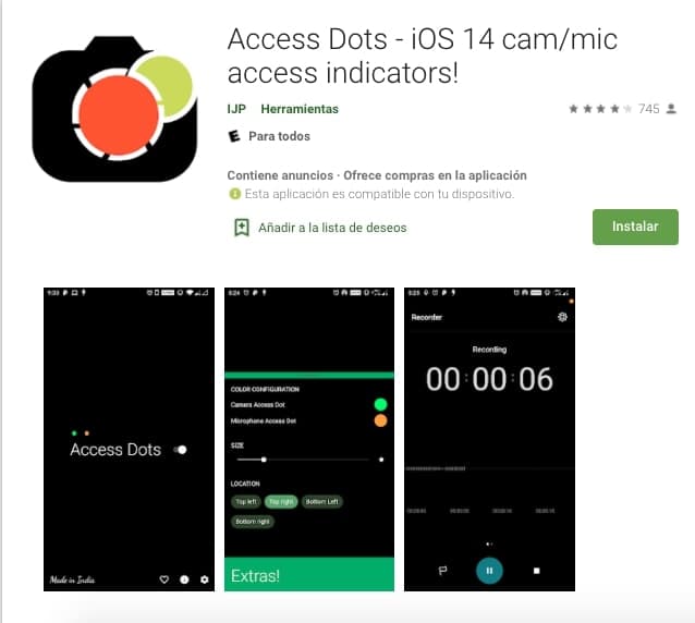 Los desarrolladores IJP lanzaron una aplicación llamada Access Dots que emula la función de iOS 14 y avisa a los usuarios cuando una aplicación traspasó la seguridad del teléfono sin permiso.