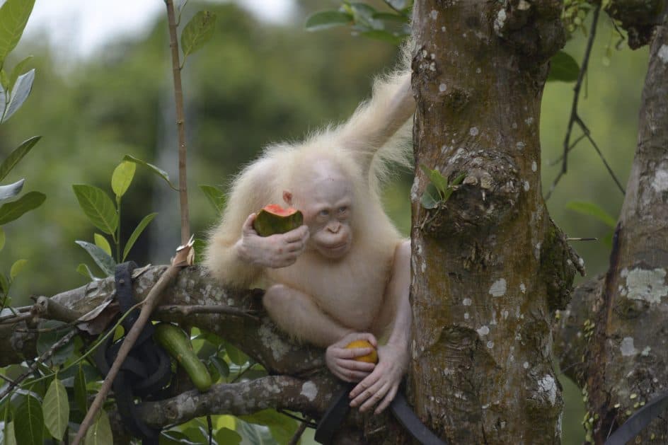 Alba es una simpática orangután que fue rescatada de un cruel cautivero, en Indonesia. Se cree que es la única orangután albina del mundo. ¿Verdad que es hermosa?