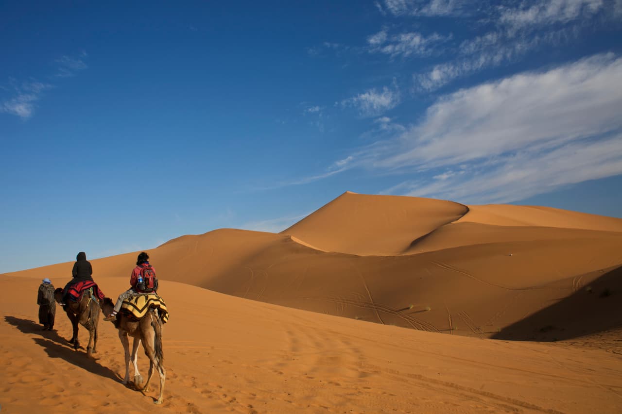 Finalmente, llegó ese esperado momento en todo viaje a Marruecos, de viajar al Sáhara, en concreto a Zagora, la particular puerta del desierto marroquí. De camino viajamos en un jeep que quedó averiado en un pueblo del Atlas, rodeados de cabras y locales curiosos. Posteriormente comimos un rico cous cous en Ouarzazate, ciudad famosa por sus curiosos edificios de arquitectura bereber y su condición de estudio cinematográfico nacional hasta que, finalmente, unos simpáticos bereberes vinieron a recogernos en camellos. Poco después tomamos rica harira (sopa de harina típica marroquí) bajo una de las carpas del campamento y nos sentamos en torno a una hoguera con otras nómadas que habían terminado recalando en este perdido lugar cuyo mejor regalo es un cielo estrellado y esa arena fría en la que sumergir los pies durante ciertos momentos de reflexión.