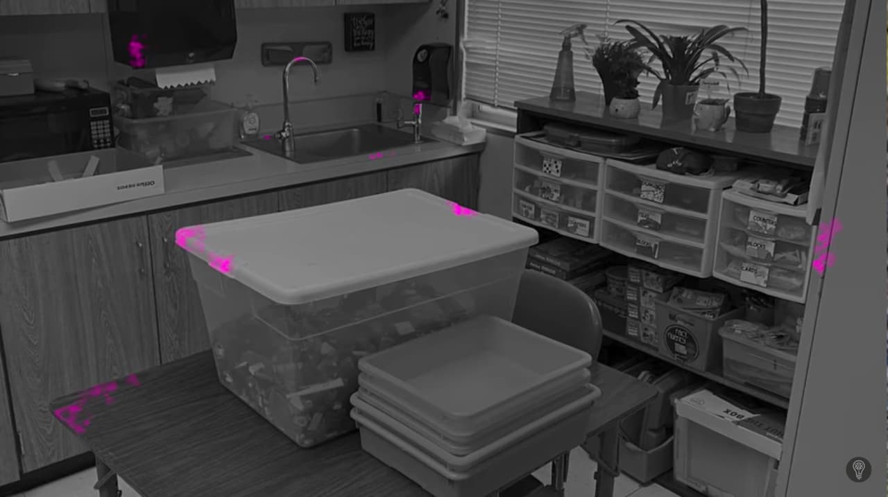 El resultado es asombroso, pues diferentes rincones quedaron marcados por el polvo Glo Germ.