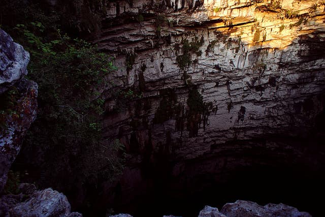 Formado por la erosión del agua en una superficie de piedra caliza, el sótano de las Golondrinas es un atractivo turístico ubicado en la huasteca potosina. El sótano de las Golondrinas es una abertura a nivel de suelo que tiene un diámetro de 60 metros y tiene una profundidad de 512 metros. La abertura es más estrecha que el interior, por lo que la fosa tiene una forma cónica.