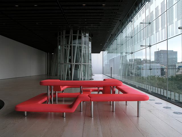 7 son las plataformas que componen este edificio estéticamente bello tanto por fuera como por dentro. Incluye un café, una tienda de libros y revistas, una biblioteca infantil, adolescente y adulto. Galerías de exhibición, salones de conferencias, salas para mirar películas, para conectarse a Internet, para estudiar en solitario o en grupo, o simplemente para leer.