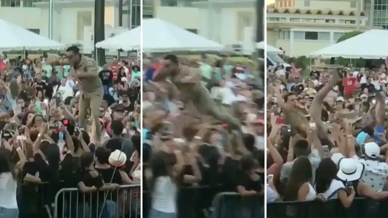 Parece que al reggaetonero le gusta lanzarse del escenario desde hace mucho tiempo. Es una práctica que lleva realizando, al menos, unos diez años.