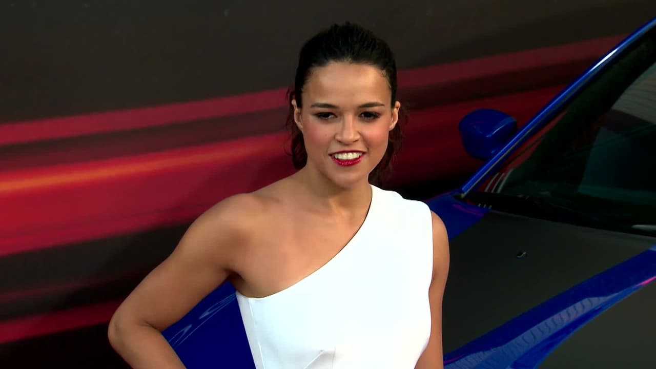 A Michelle Rodriguez no le preocupan sus trajes en el Fashion Show de Nueva York, diciendo que "si un pezón se sale, no me importa."