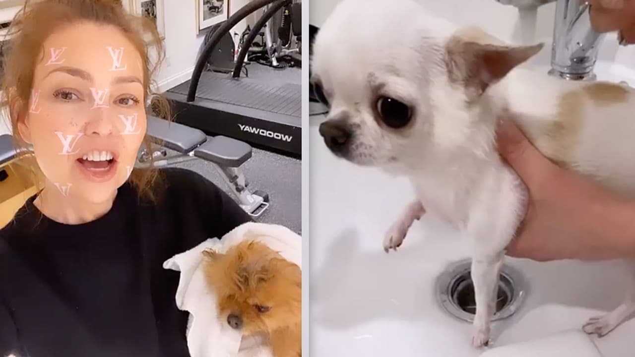 La estrella de pop se dio a la tarea de hacerle "manicura y pedicura" a Gigi y Amorcita Love. A sus famosas compañeras de aventuras les tocó baño y no le respondieron a su dueña con buena cara, pero valió la pena porque le llegó la inspiración a la cantante para nueva canción.