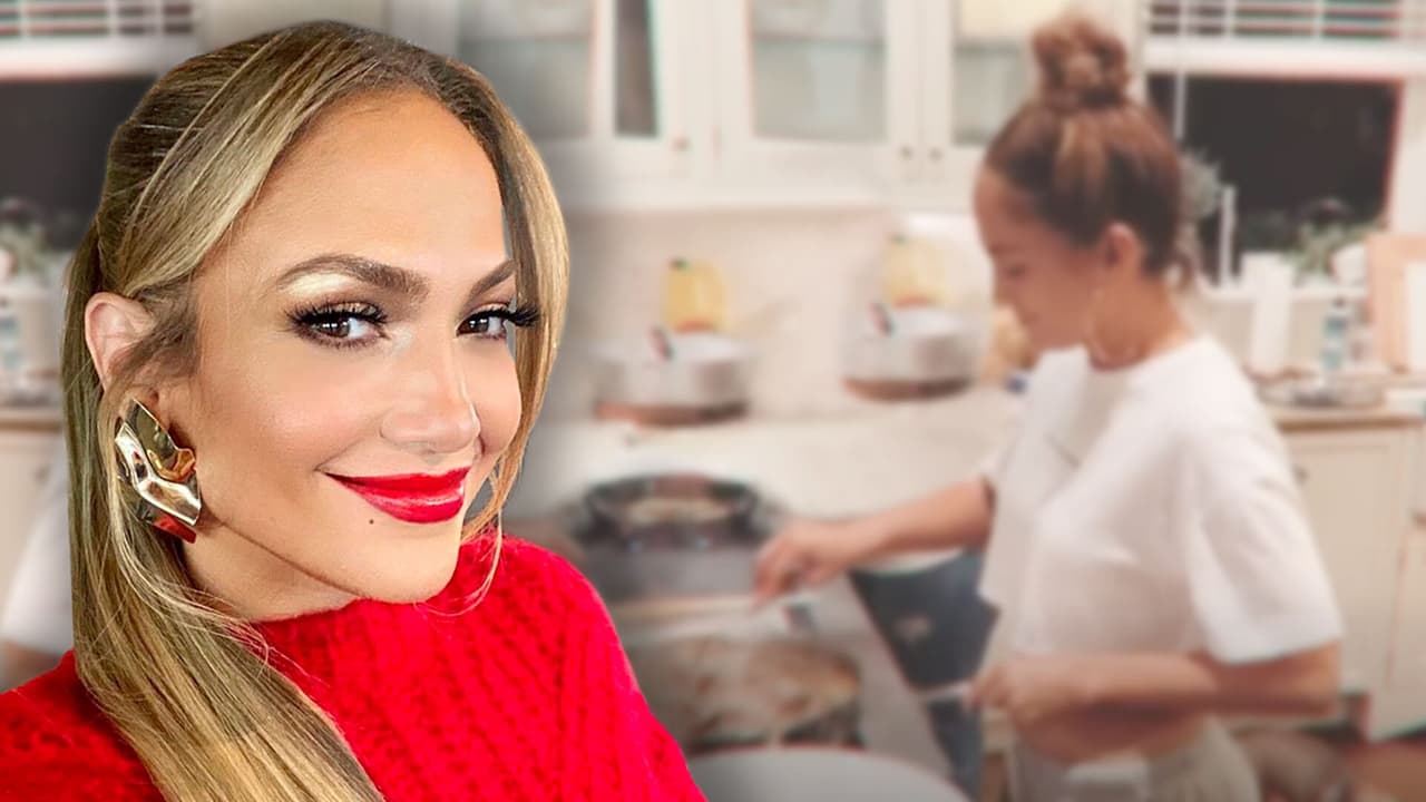 Al son de la ‘Abusadora’ de los 80, Jennifer López echa una mano para completar la cena en su casa