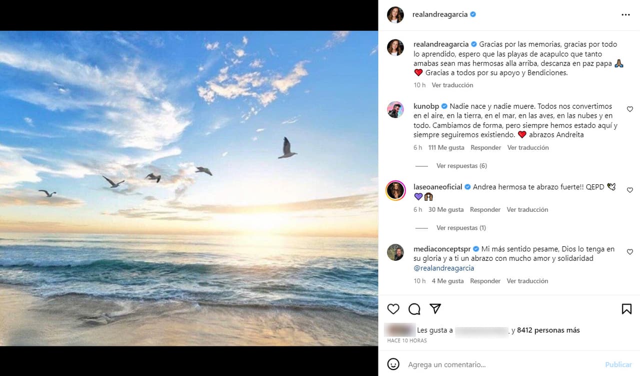 Las declaraciones de Andrea García salen a la luz horas después de que publicó en Instagram un sentido mensaje de despedida a su padre.