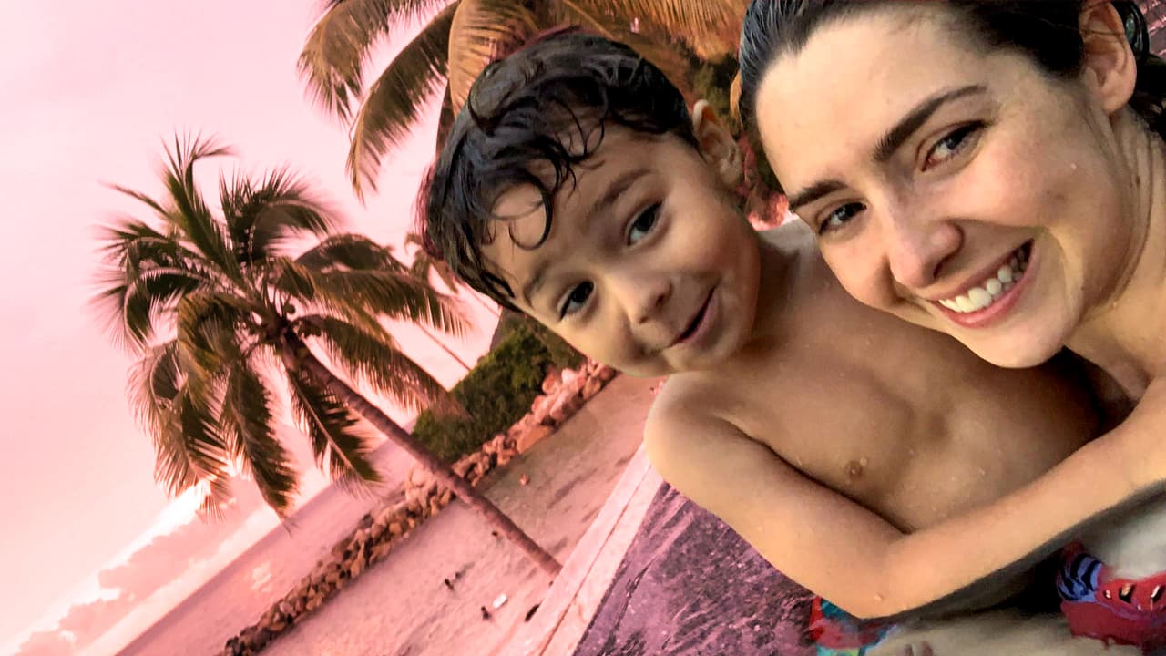 A pesar de no contar con el mejor clima para estar en la playa, Ariadne Díaz acudió en compañía de su hijo Diego. Y arropado por los cariños de su madre, el pequeño empezó a cantar con maullidos de gatito.
