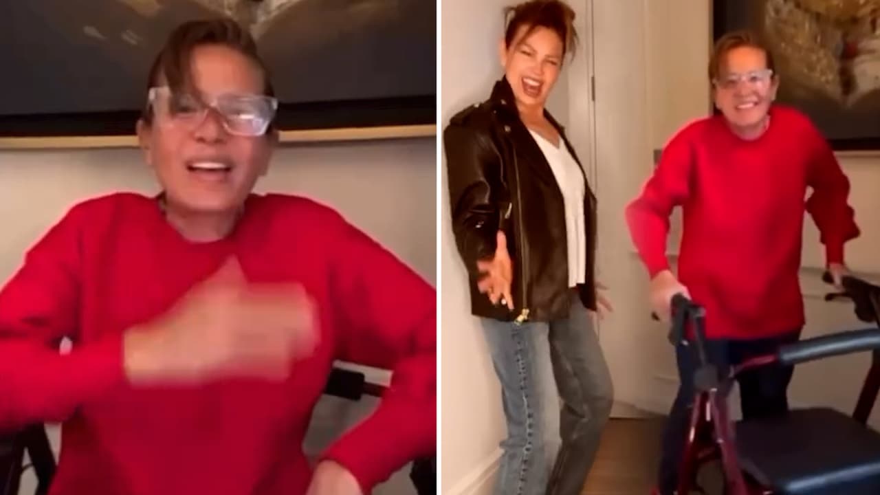 Bailando y con andadera, Yolanda Andrade felicita a Thalía mientras lucha contra enfermedad