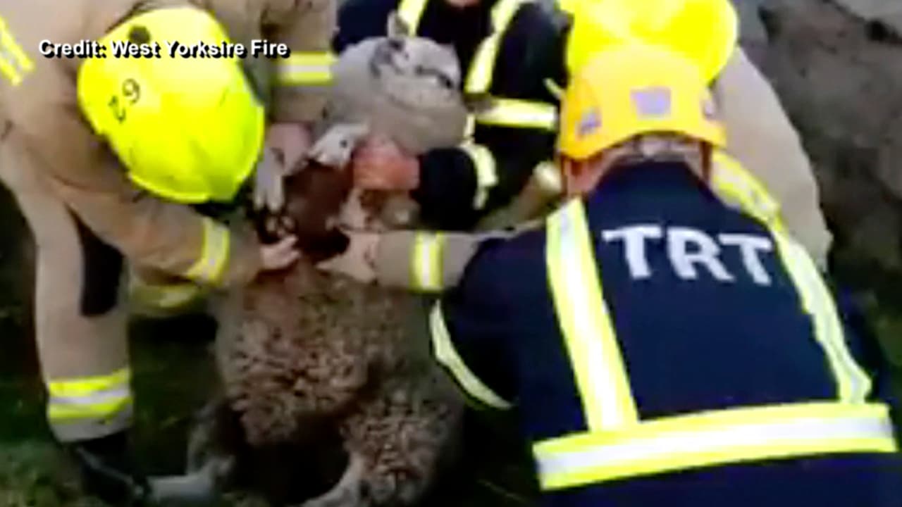 Los rescatistas llegaron a tiempo para salvarle la vida a Dolly, una oveja que quedó atrapada en un peligroso terreno lleno de rocas.