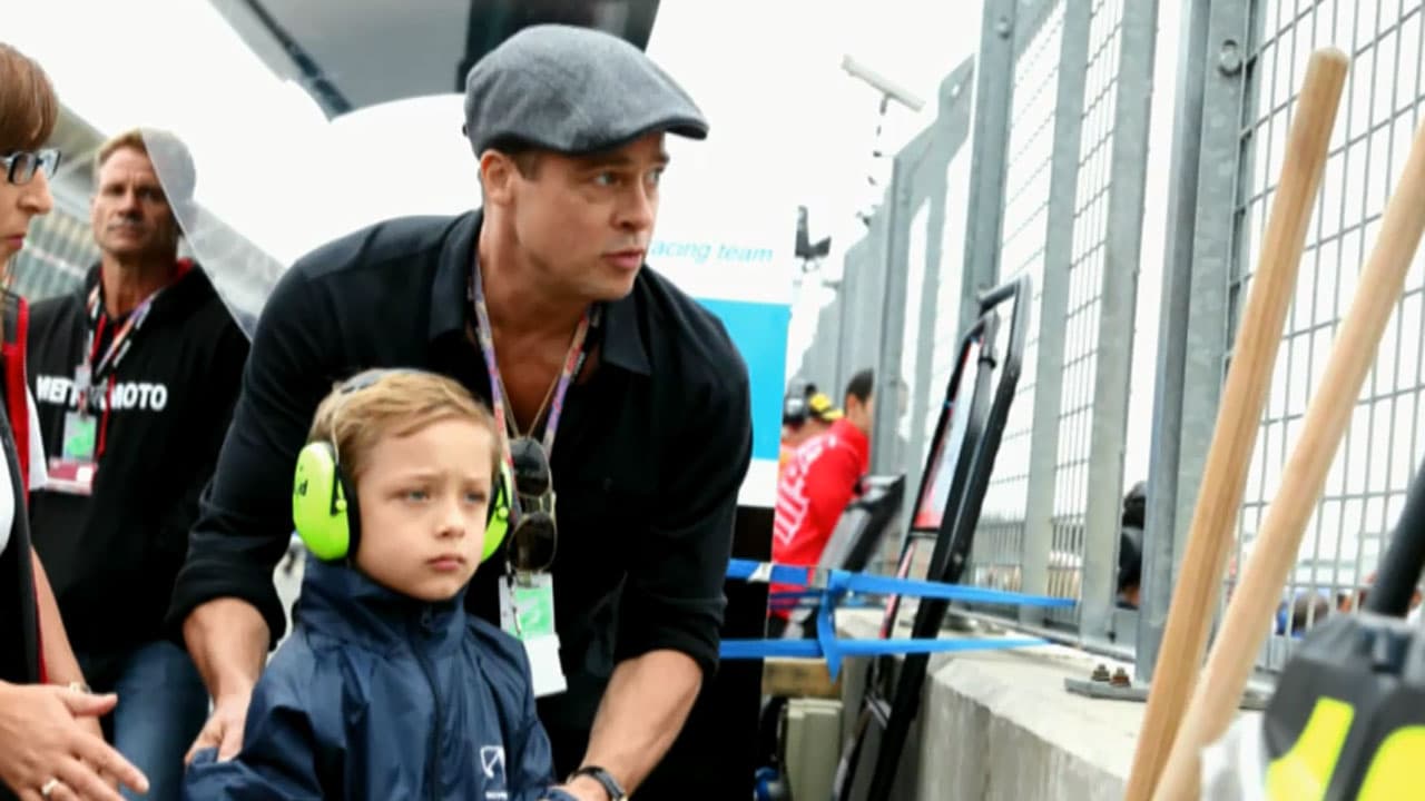 El actor llevó a su pequeño, de siete años, al Gran Premio de Moto GP en Inglaterra, donde conoció a figuras del motociclismo.
