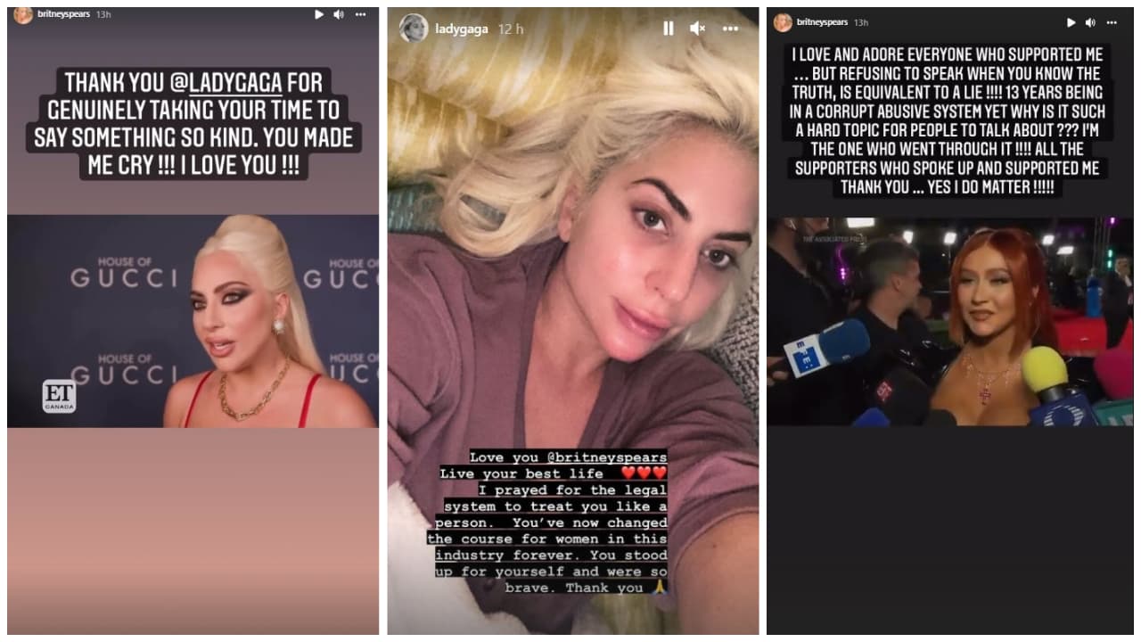 Britney Spears agradeció en redes sociales las palabras de Lady Gaga sobre el fin de su tutela en una reciente entrevista que dio. Pero también reaccionó a la negativa de Christina Aguilera de opinar cuando fue cuestionada al respecto.