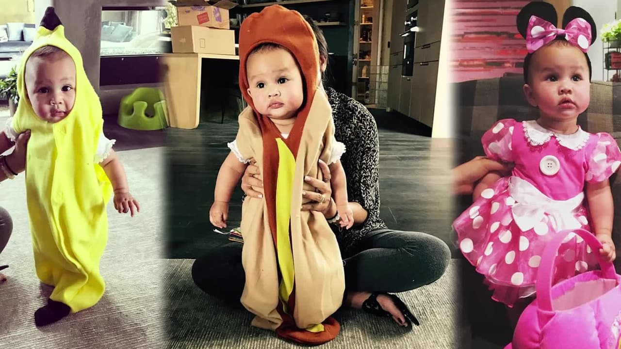 Chrissy Teigen viste a su hija Luna en una variedad de disfraces de Halloween, incluyendo un perro caliente, un pavo real, Minnie Mouse, y una banana.