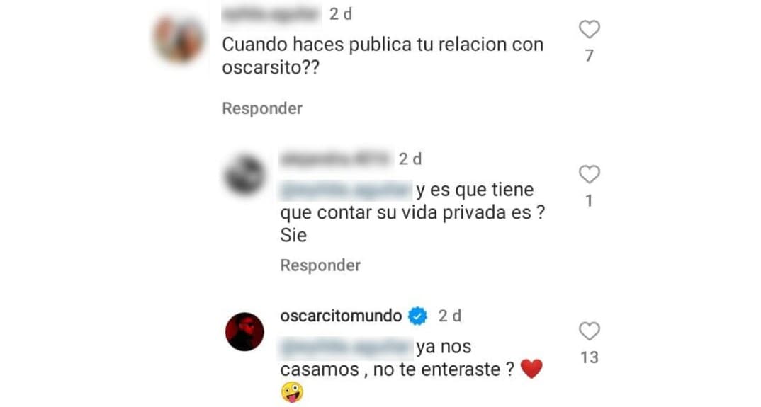 Meses antes, una seguidora cuestionó a la empresaria sobre cuándo haría oficial su romance con el cantante, pero aunque ella no respondió, fue el artista quien bromeó y dijo que ya estaban "casados".